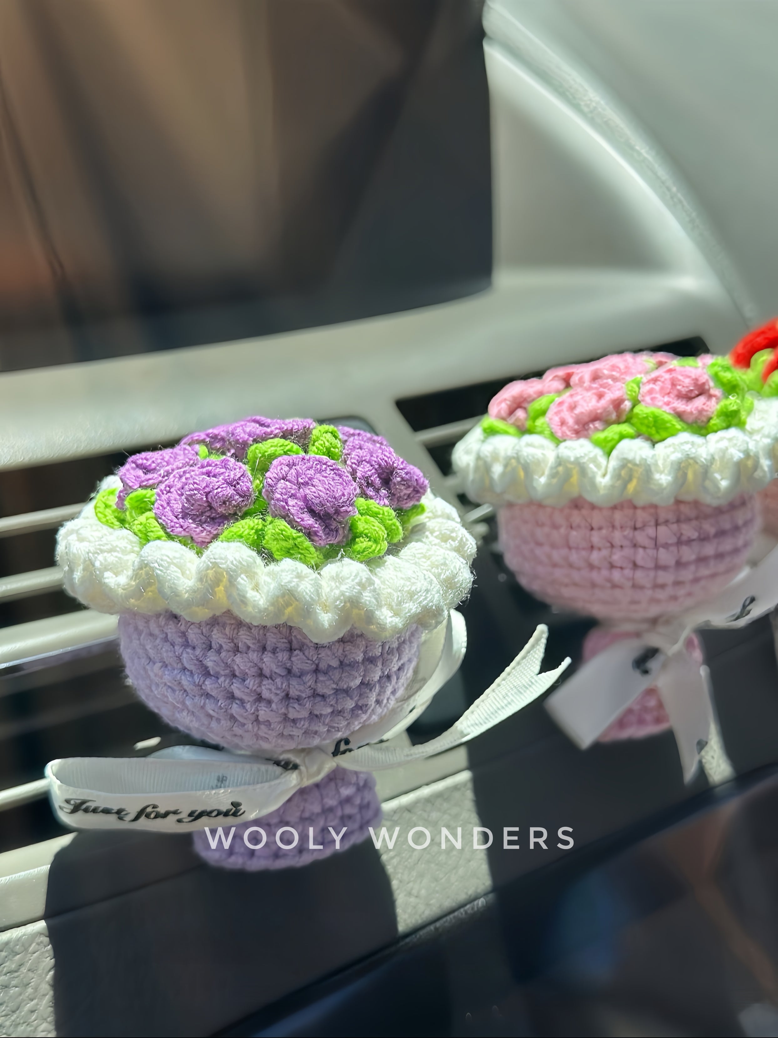 Handmade Crochet Flower Bouquet Car Vent Clip – Whimsical & Giftable Car Accessory